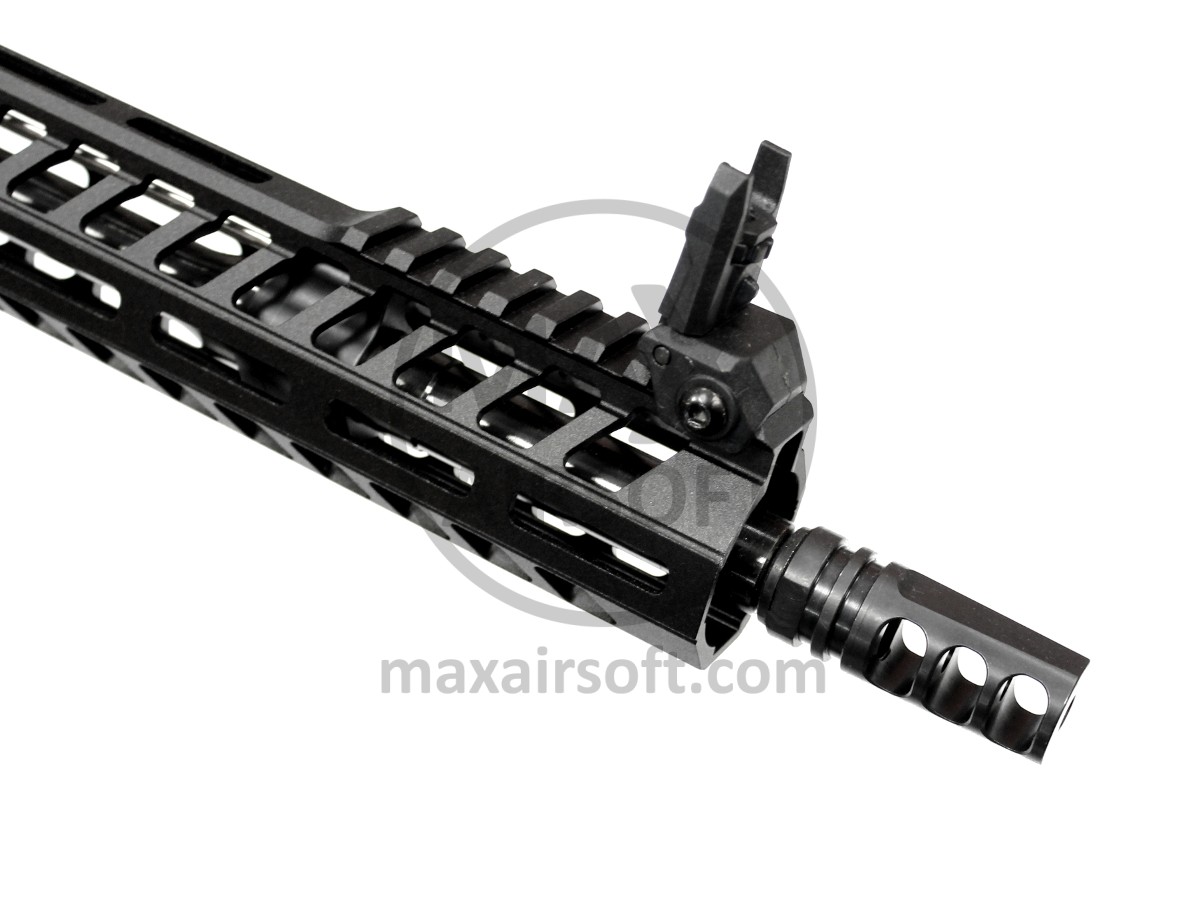 Top Semi-Automatic Rifle ARX15-MS Pro manufactured by Tinck Arms made according to Mil-Spec military standards. The rifle works on the principle of extracting powder gases with a cylindrical rotating lock and can use both .223 Remington and 5.56×45 NATO cartridges! The rifle has a chromed steel barrel inside, with a 1:7 swirl and a 1/2-28 UNEF thread. Body is CNC milled from a single block of 7075 aluminum with a Type III anodized finish and the entire rifle is machined and assembled to minimal tolerances. A modern M-Lok handguard, MOE pistol grip and Minimalist stock are installed. The rifle has an adjustable gas block to help with the use with suppressor, 3-chamber recoil compensator compatible with the QD A2 system suppressors, the ambidextrous - one-handed cocking handle and the folding sights, which allow aiming even in the folded position. The capacity of the magazine is 10 .223 / 5.56×45 rounds.