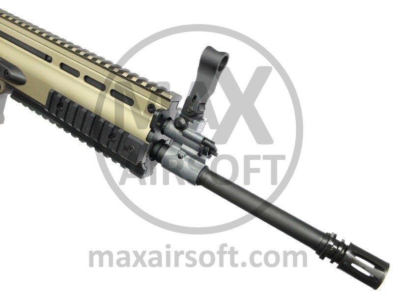 VFC high quality Full Metal replica of Mk16 FN SCAR L (Light) high-quality replica made by VFC with long barrel useful. Replica is made out of metal with metal barrel, rails and sights. Whole upper surface is covered with Rail sistem as are sides and bottom for mounting all kinds of accessories like scope, red-dot flashlingt and grip. Stock is folding and so are front and back site for easier aiming with optics and red dots. Replica uses classic and modern M4 magazines.