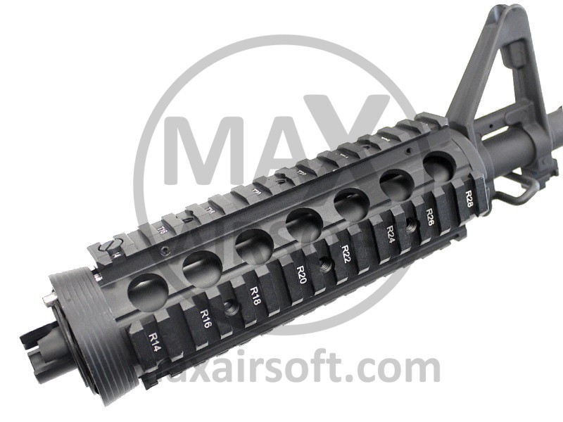 R.I.S. conversion kit for m4 series. Comes with outer barrel, R.I.S. handguard, front sight, sling adaptor and flashider.