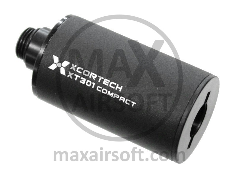 Mini Silencer Tracer XT301 Compact made by Xcortech that illuminates tracer BB's for use at night or dark conditions. Package includes charger so replacing tracer batteries is not necessary. Tracer has 11mm Clockwise thread and 14mm Counter Clockwise adapter. Tracer XT301 Compact can fit in other Airsoft suppressors.
