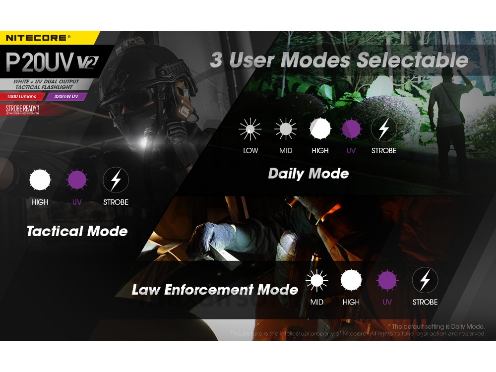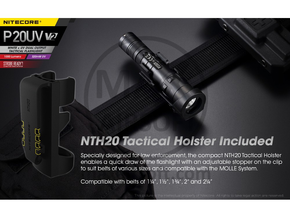 Nadograđena verzija popularnog P20UV, model V2 daje 25% svjetliji izlaz uz UV zraku od 320nW, što svjetiljku čini idealnom za provedbu zakona, inspekciju i taktičku upotrebu. Ostale taktičke značajke uključuju tehnologiju 2. generacije Strobe Ready, okvir za teške udarce i uključenu taktičku futrolu NTH20 koja omogućuje brzo izvlačenje svjetiljke.