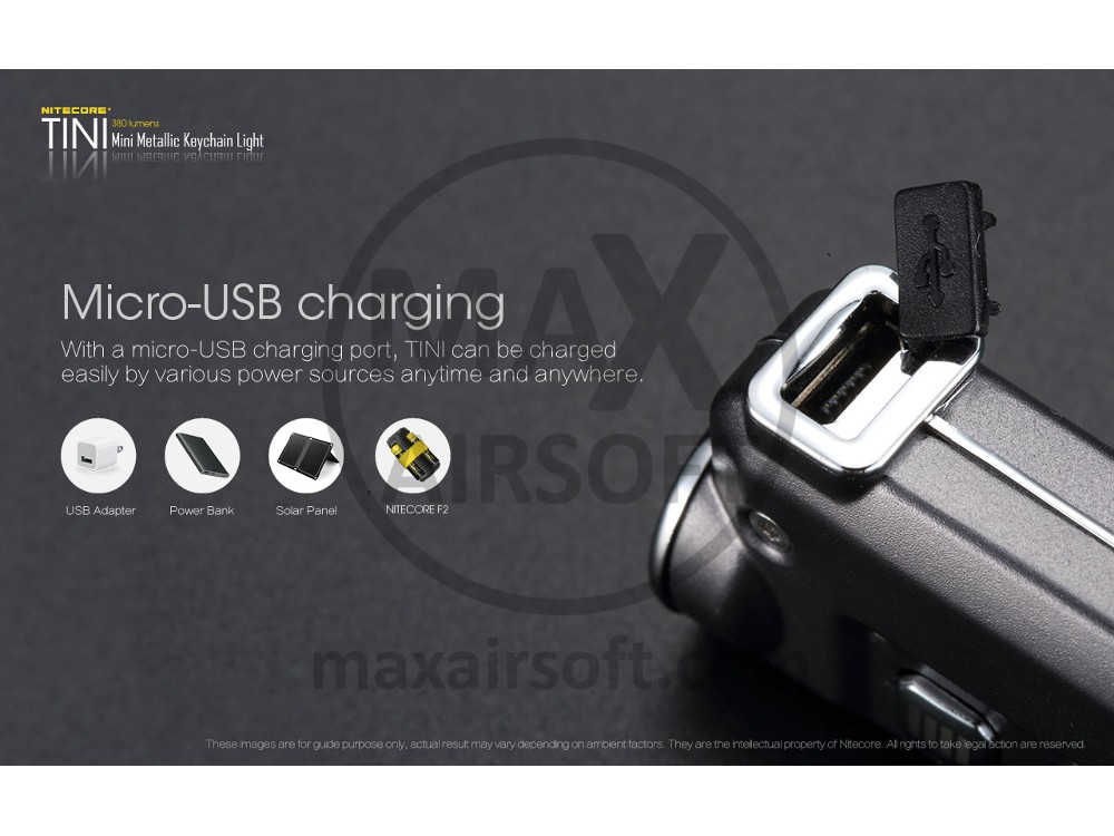 Ugrađena Li-ion baterija od 280mAh, TINI se može puniti putem univerzalnog USB priključka. Kada je potpuno napunjen, radi do 60 sati. TINI koristi CREE XP-G2 S3 LED za emitiranje 380 lumena. U kombinaciji s PDOT tehnologijom za izvanredne performanse reflektora.